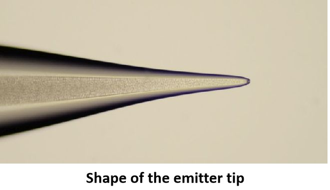 The newly developed emitter-integrated capillary column features an all-in-one design with the emitter directly connected to the column outlet. This minimizes dead volume and significantly improves sensitivity, reproducibility, and operability in LC/MS.