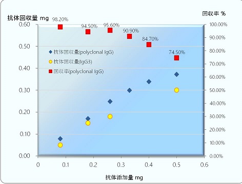 - 目的IgG抗体の精製、濃縮及び培養液中のIgG抗体濃度測定を簡便にできます