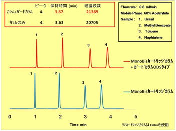 Monobis Guard Column ODSタイプ のみでのクロマトパターン例 |